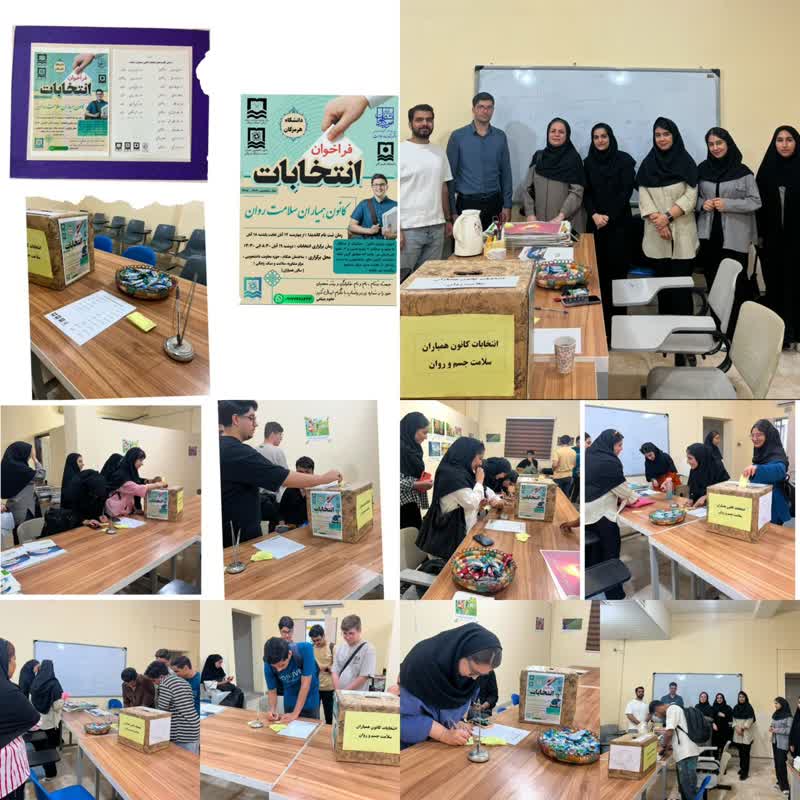 🗳️انتخابات کانون همیاران سلامت دانشگاه هرمزگان روز دوشنبه ۱۹ آبان‌ماه ۱۴۰۴ با حضور جناب آقای دکتر هادی سلیمی (رئیس مرکز مشاوره، سلامت و سبک زندگی) به‌صورت حضوری در سالن همیاران مرکز مشاوره دانشگاه هرمزگان برگزار گردید.
