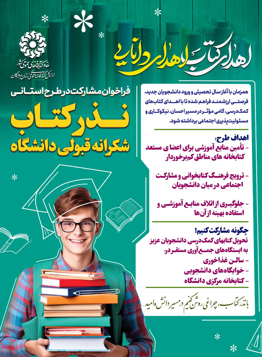 فراخوان مشارکت در طرح استانی نذر کتاب