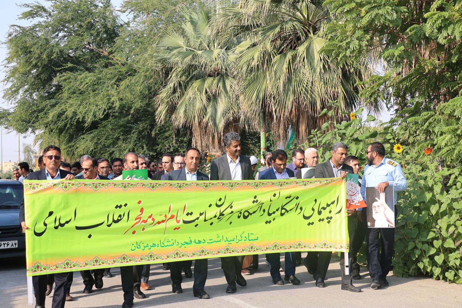 به مناسبت دهه مبارک فجر، راهپیمایی با حضور هیئت‌رئیسه، اساتید وکارکنان دانشگاه هرمزگان برگزار شد.
