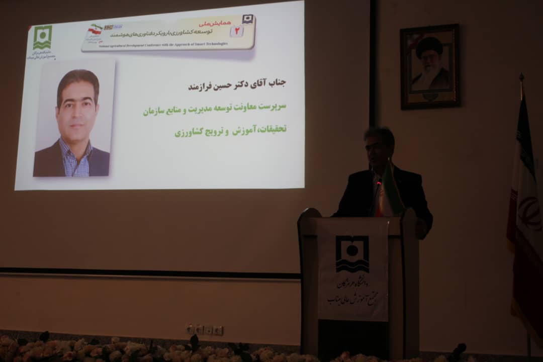 در پایان قسمت اول همایش، جناب آقای دکتر مرادی ریاست محترم مجتمع آموزش عالی میناب در مورد چشم انداز مجتمع در زمینه ی هوشمند سازی کشاورزی، صحبت کرده و بر اهمیت منطقه ی مکران و لزوم نقش آفرینی مجموعه های دانشگاهی در این منطقه تاکید کردند.